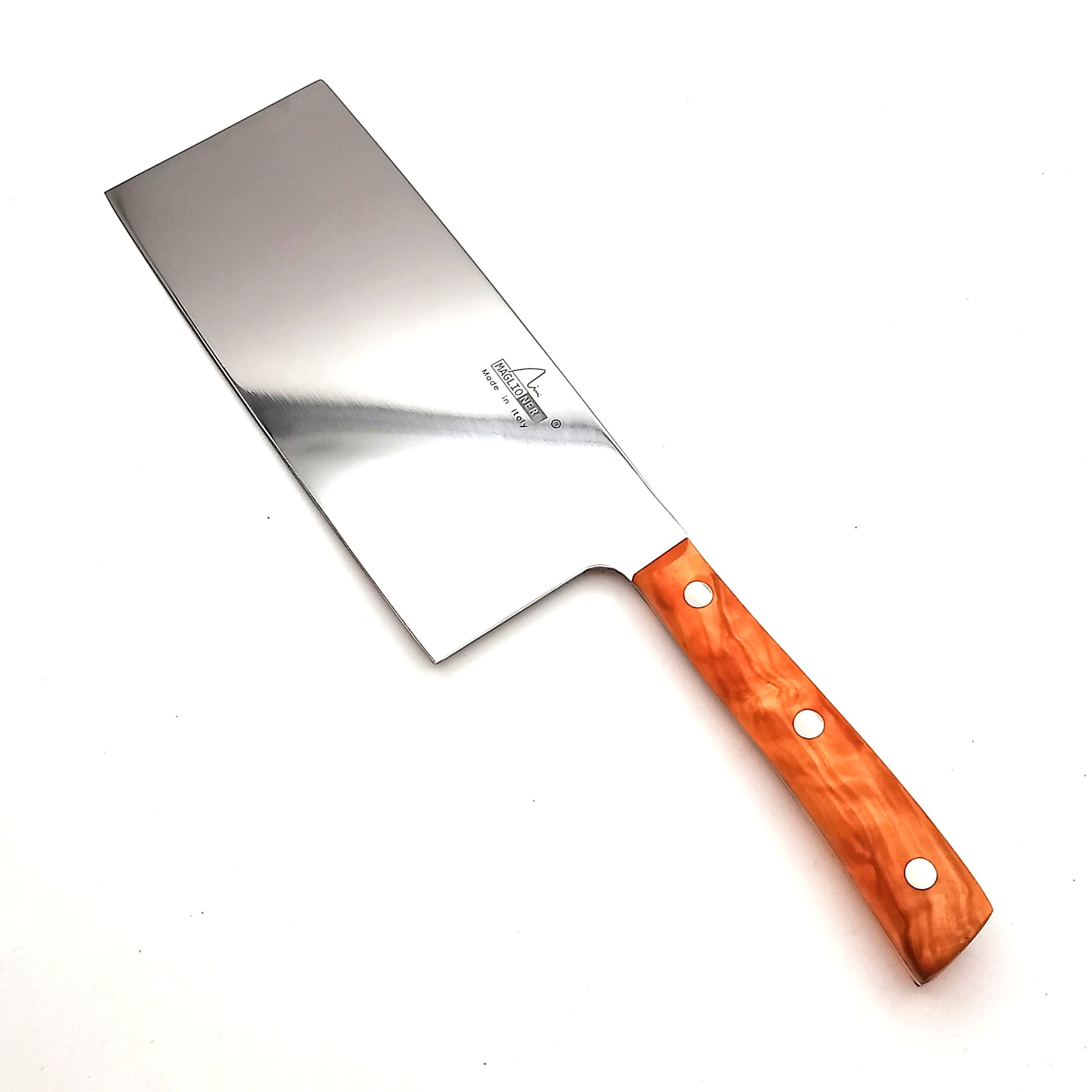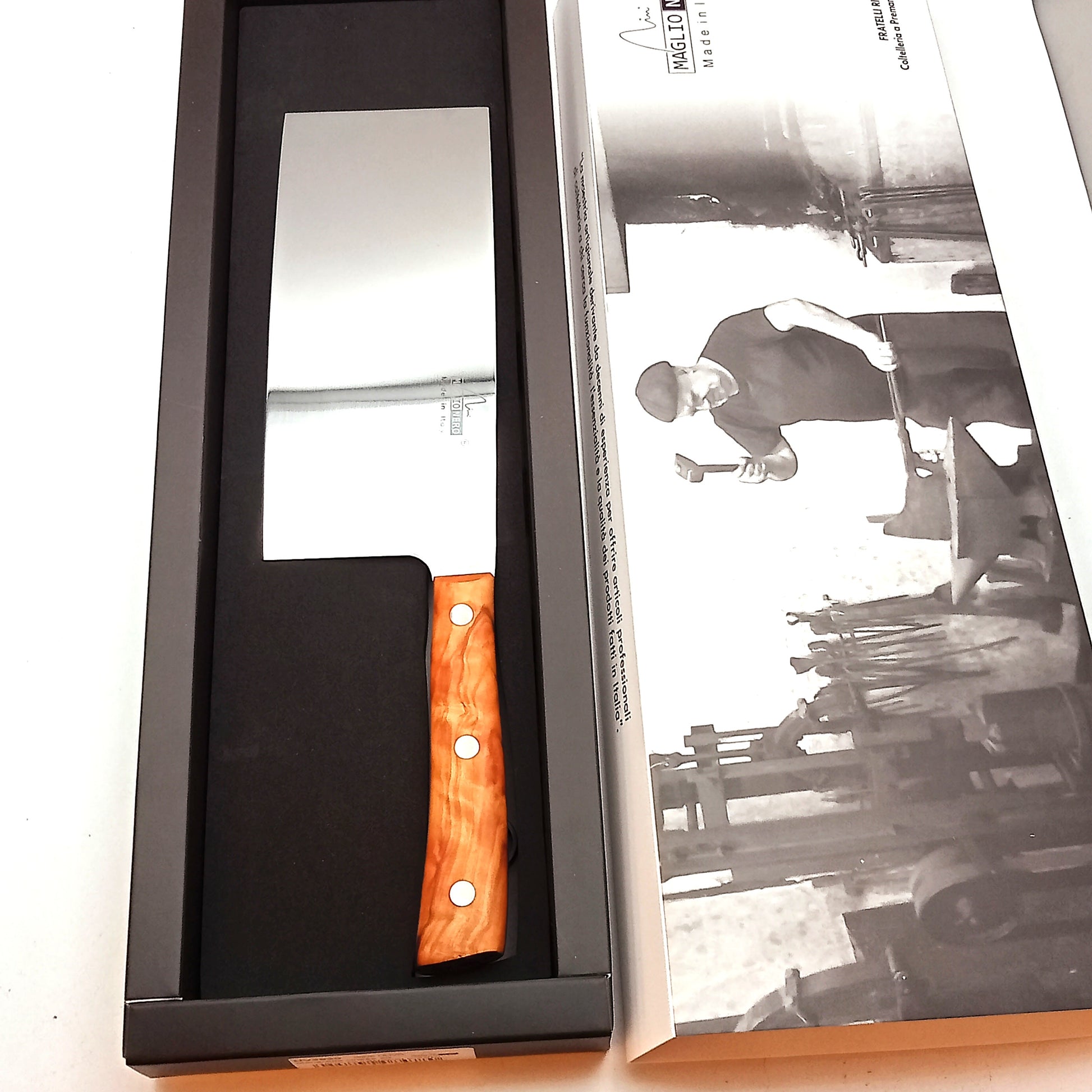 Il coltello Maglionero Modello Cinese è un coltello molto versatile, la sua lama alta permette la lavorazione sia di carne che di verdure, ma soprattutto di trasportare il cibo direttamente sul lato della lama. La lama alta rispetto al manico garantisce spazio alle nocche, permettendo un taglio fluido senza urtare il piano.