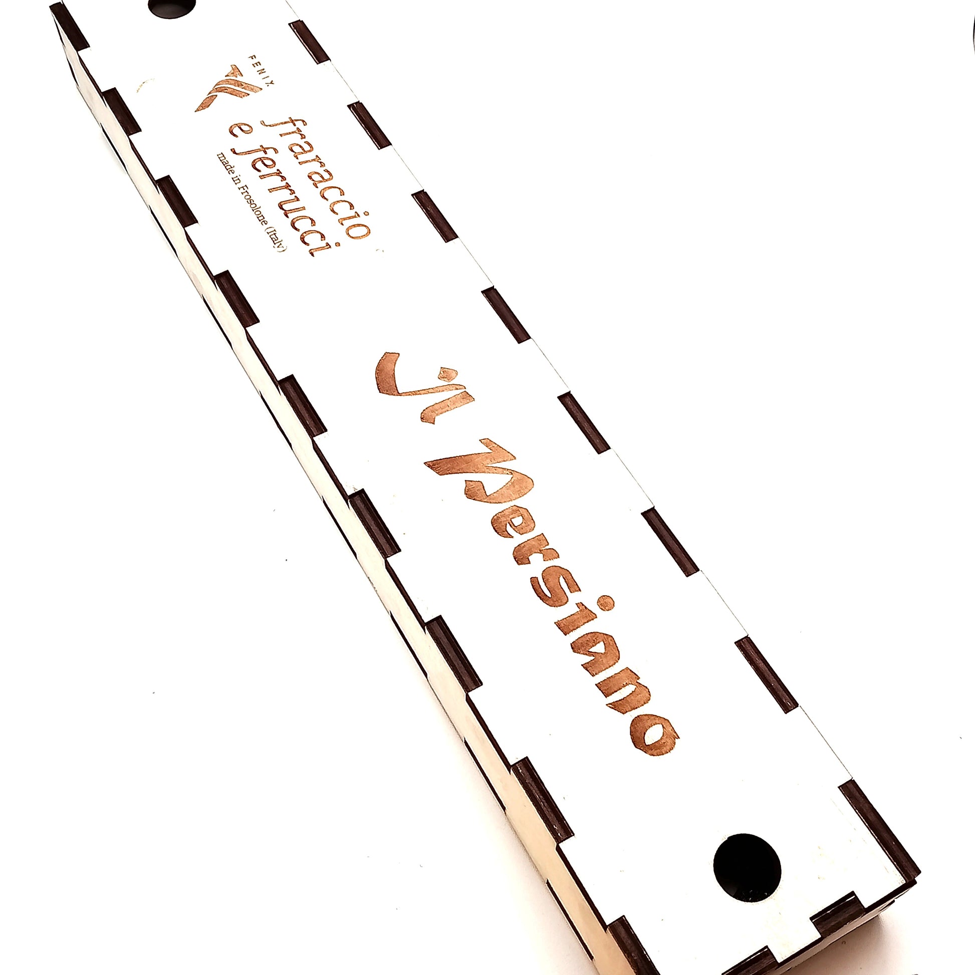 Coltello costruito in acciaio inox full-tang con manico in olivo, dotato di scatola in legno.