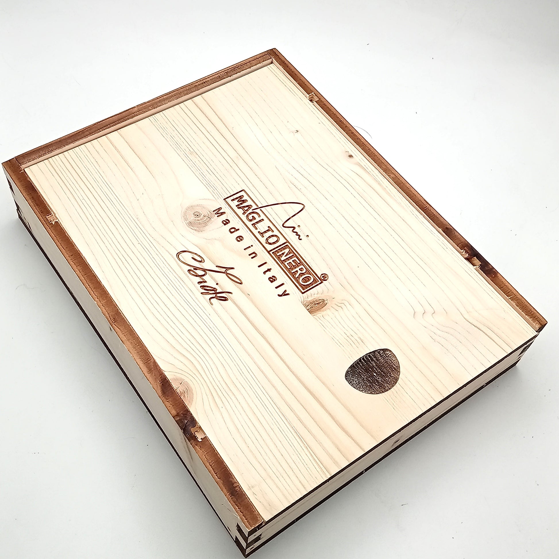 Bellissimo set di 6 coltelli da tavola con lama liscia lucidata a specchio e manico in Pom, forniti in una cassettina di legno. Tutti i coltelli con manico in Pom si possono lavare in lavastoviglie.