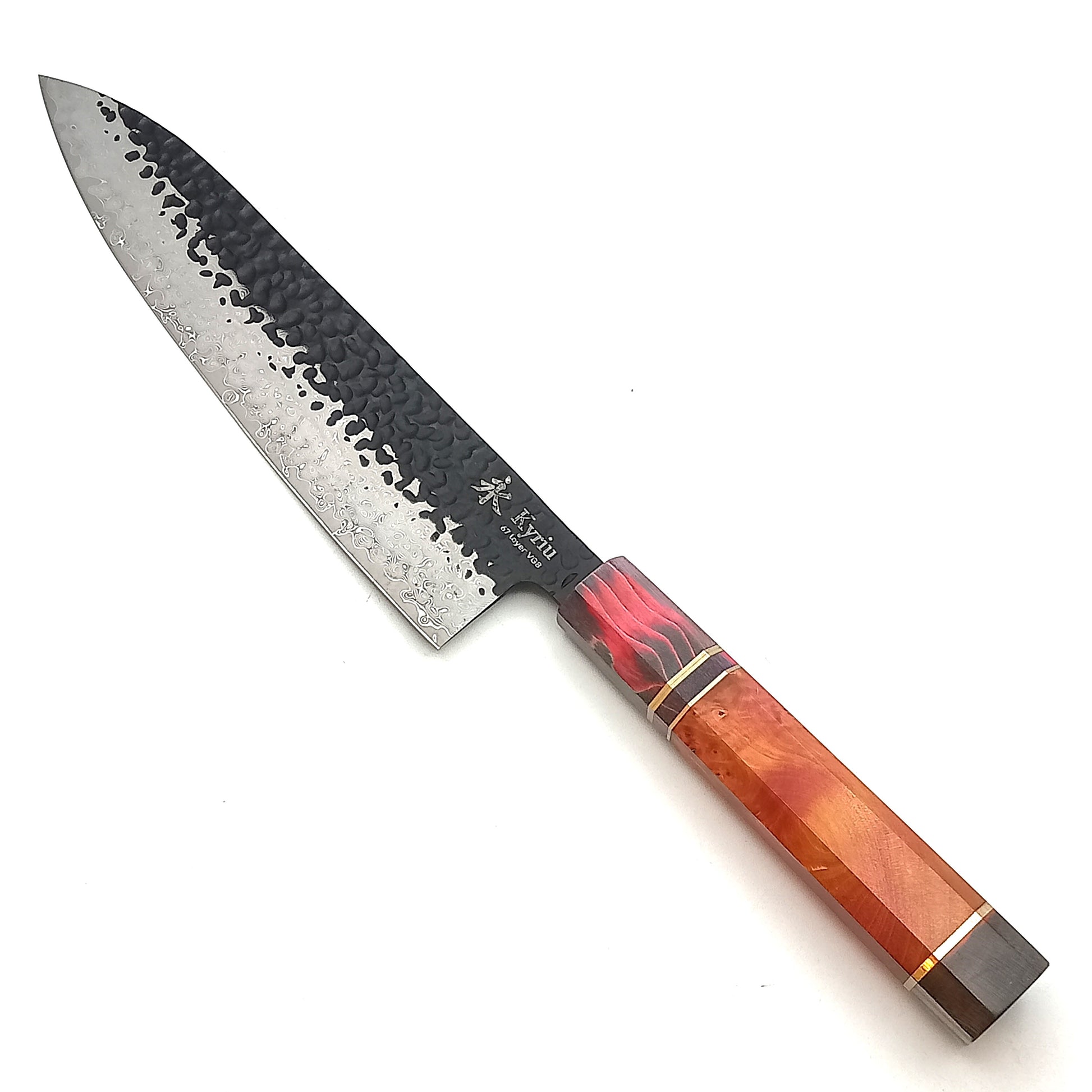 Set di due pezzi di coltelli Kyriu della serie Korouchi con lama in damasco 67 strati e manico ottagonale in legno colorato. Il set è composto da: