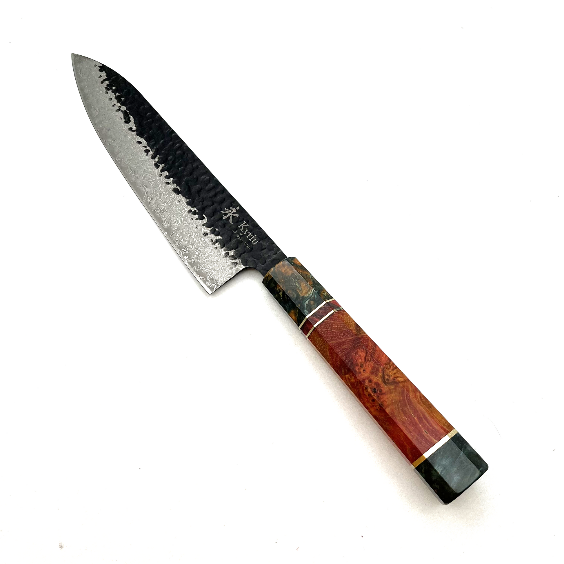 Set di 2 pezzi di coltelli Kyriu della serie Korouchi con lama in damasco 67 strati e manico ottagonale in legno colorato. Il set è composto da: