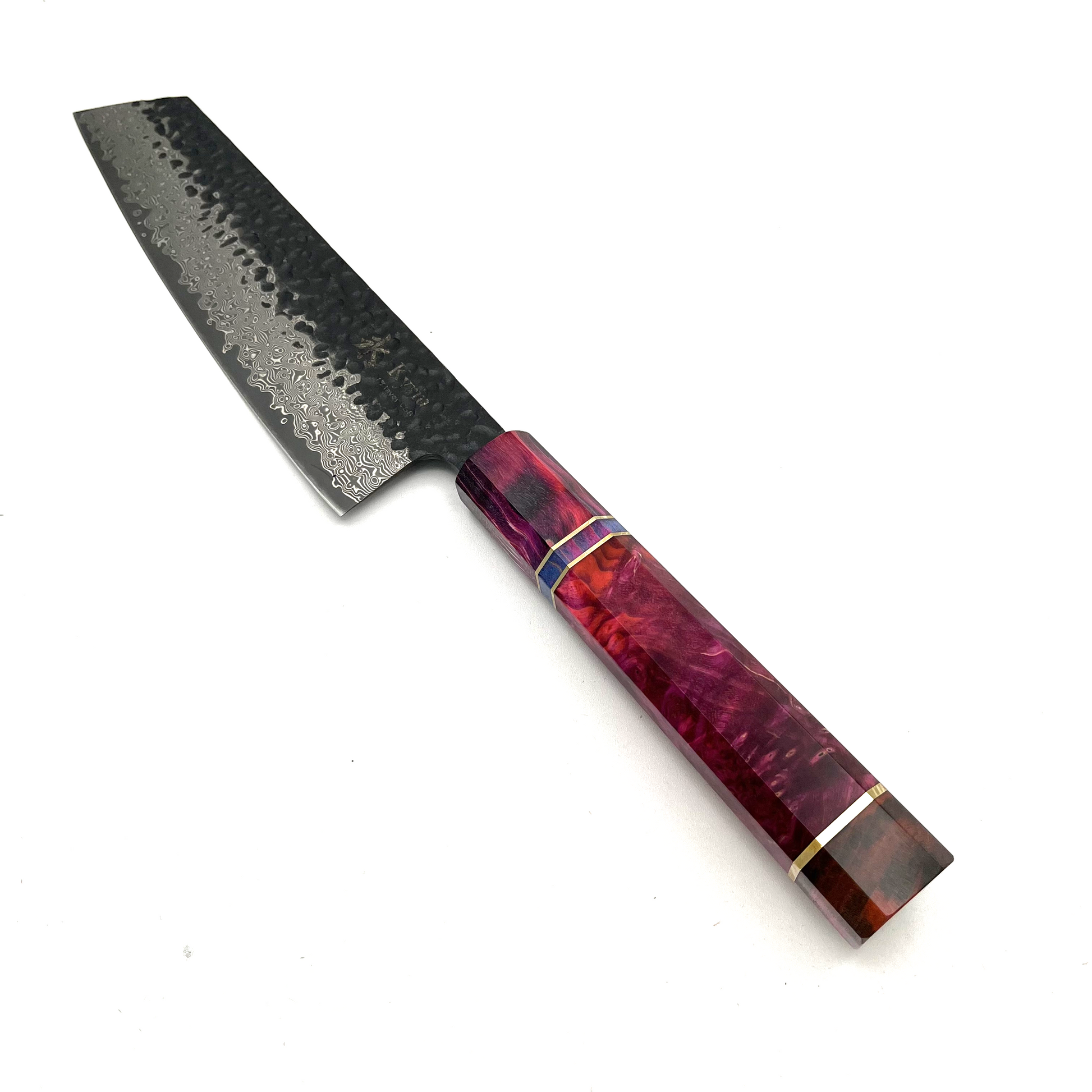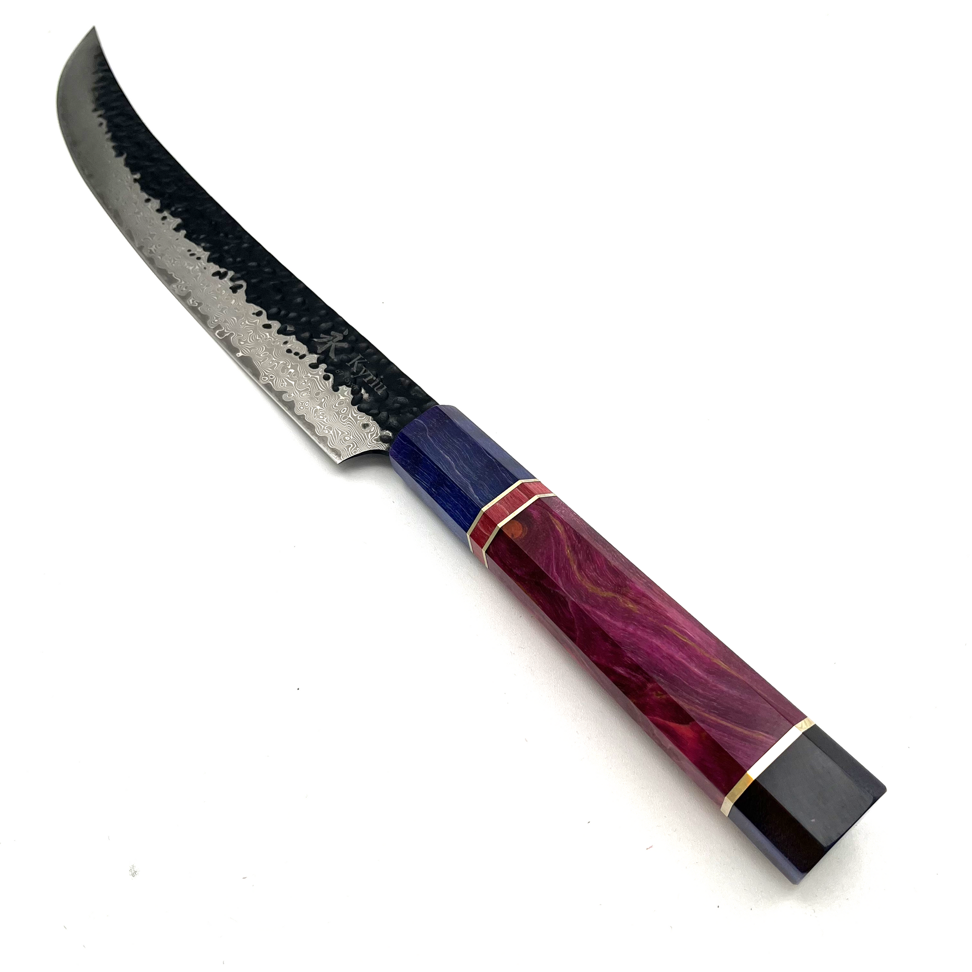 Set di 3 pezzi di coltelli Kyriu della serie Korouchi con lama in damasco 67 strati e manico ottagonale in legno colorato. Il set è composto da:
