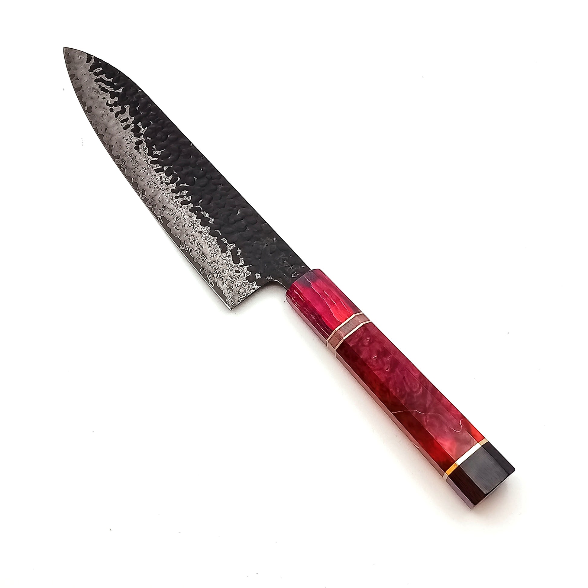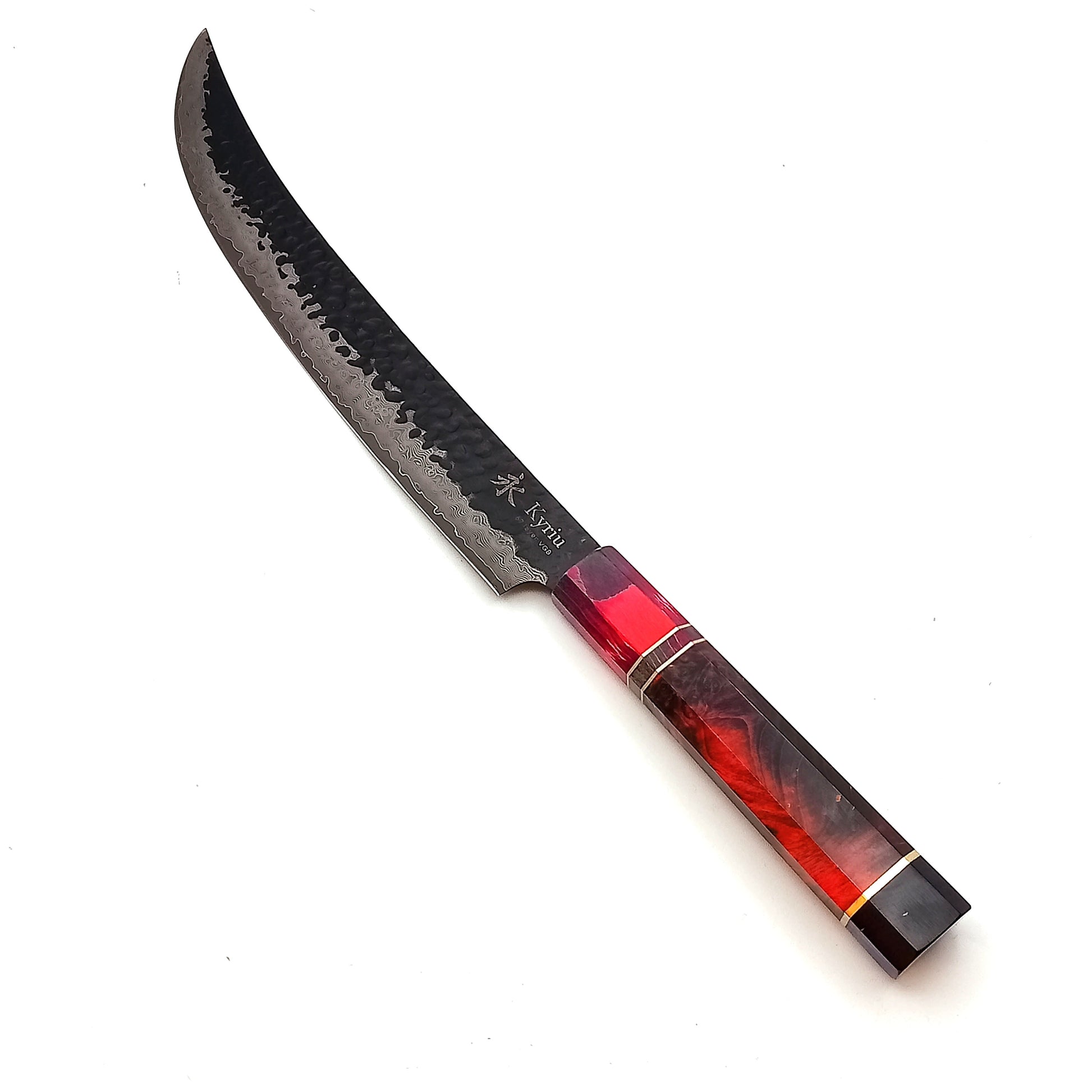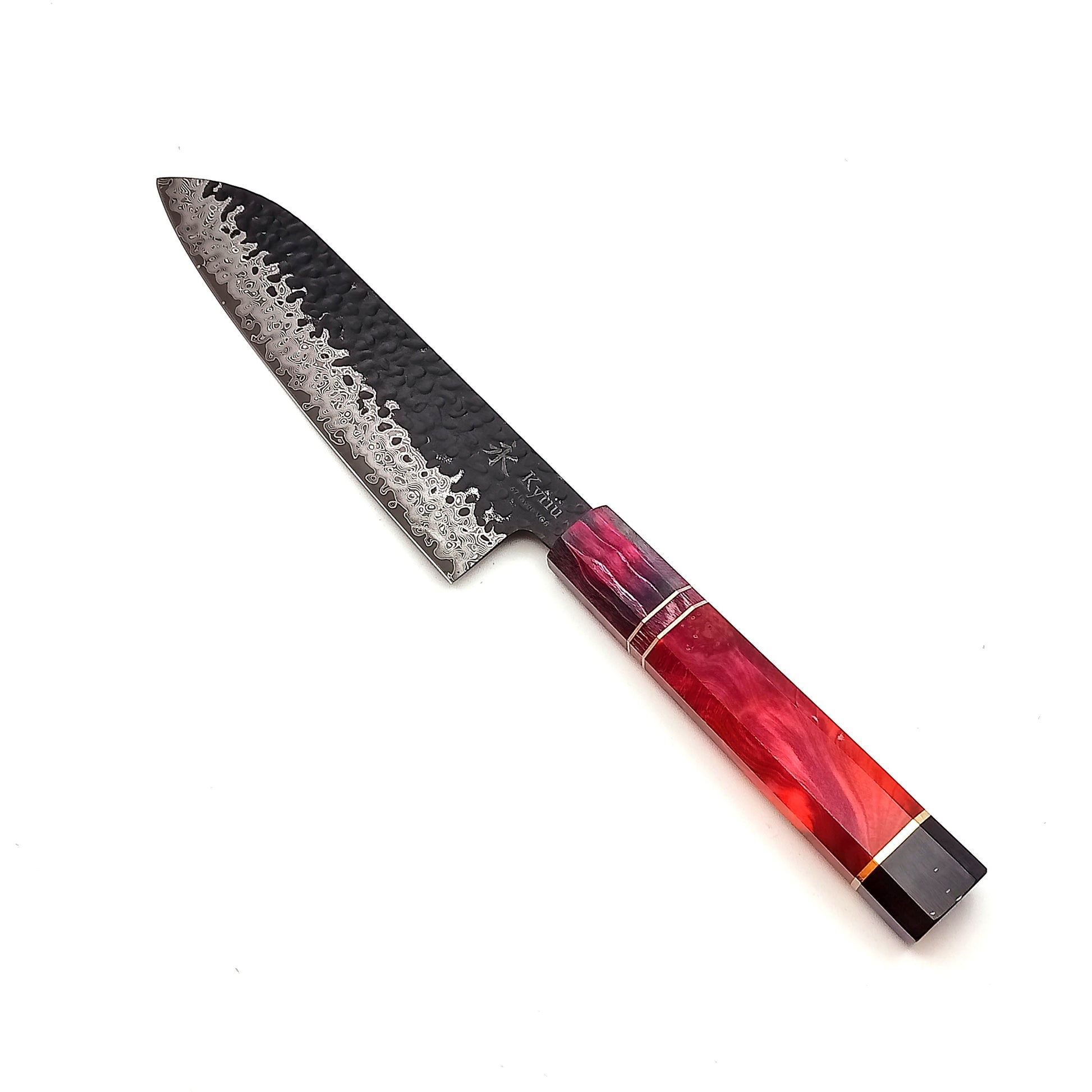 Set di 3 pezzi di coltelli Kyriu della serie Korouchi con lama in damasco 67 strati e manico ottagonale in legno colorato. Il set è composto da: