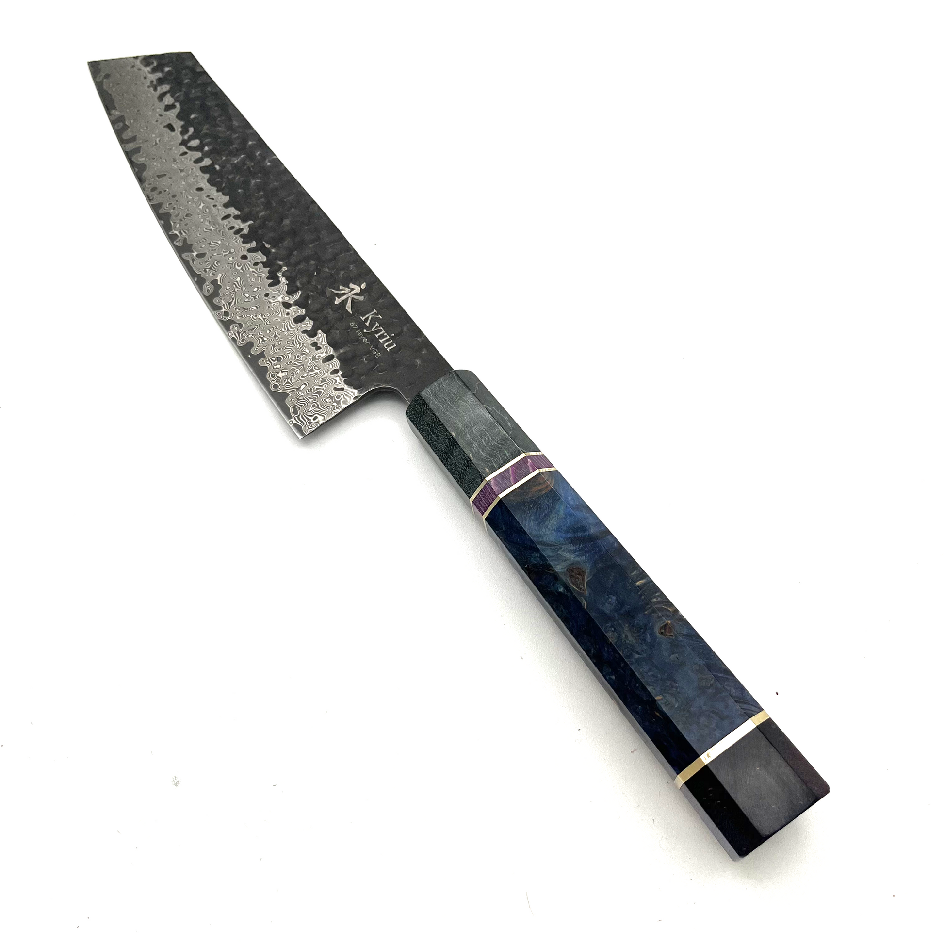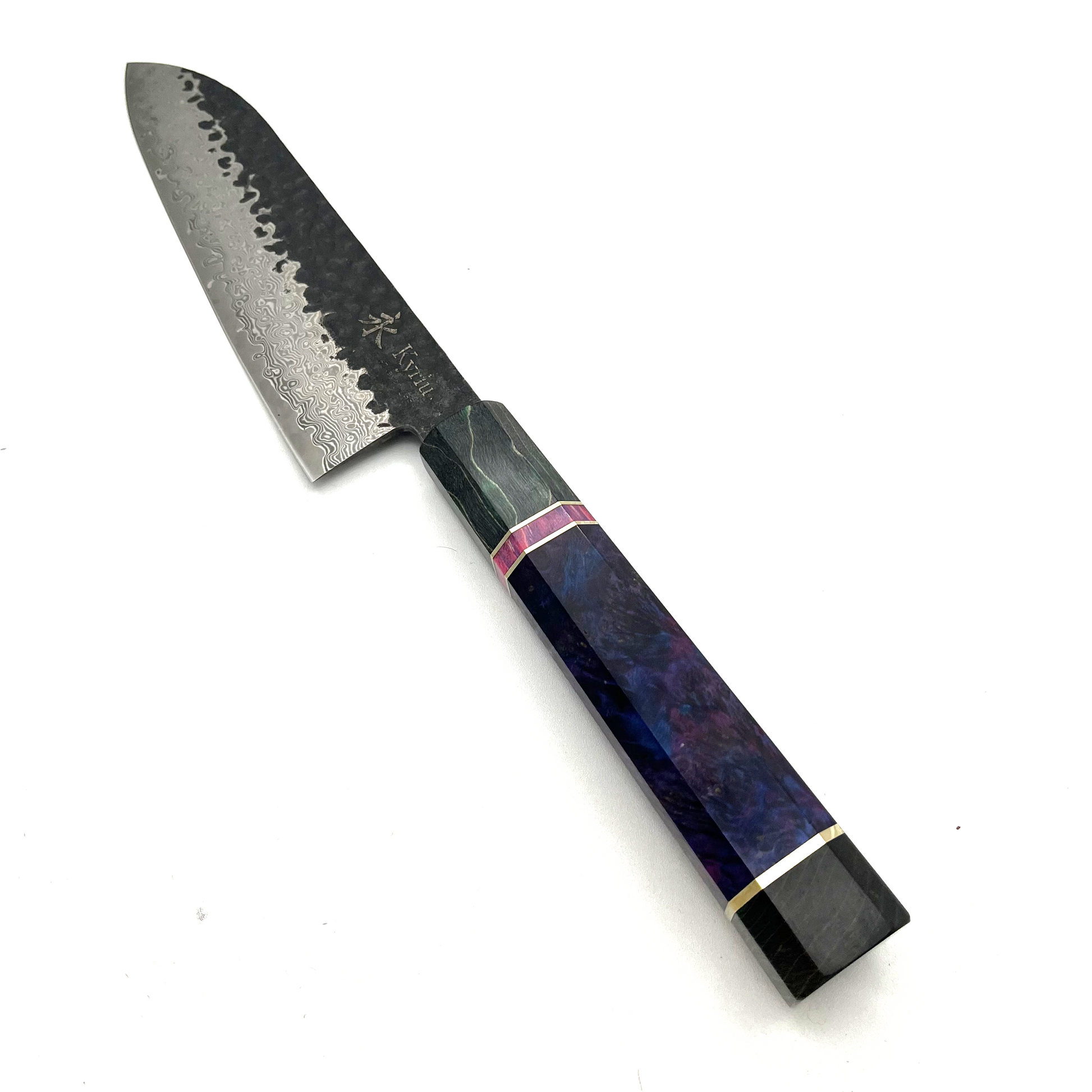 Set di cinque pezzi di coltelli Kyriu della serie Korouchi con lama in damasco 67 strati e manico ottagonale in legno colorato. Il set è composto da: