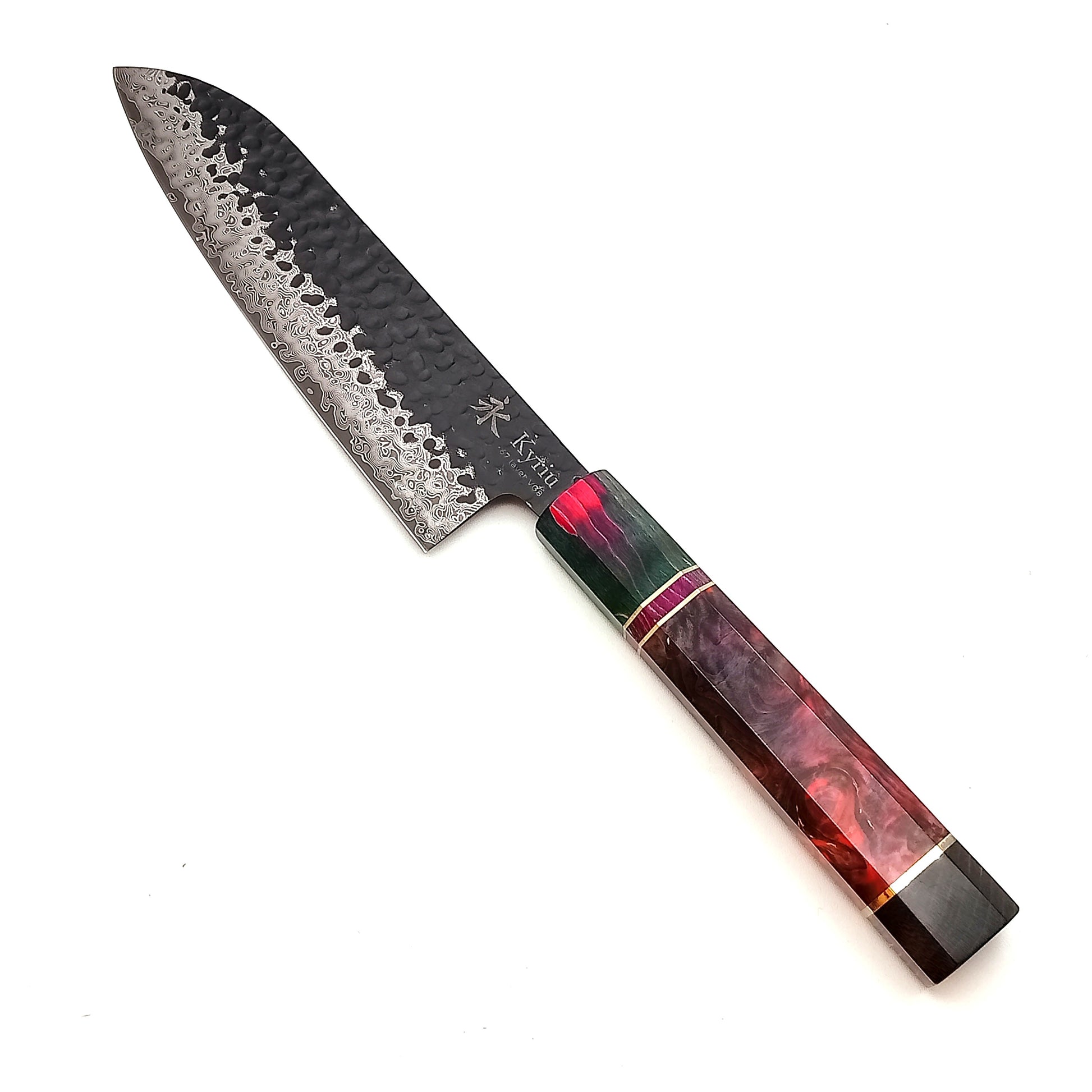 Set di 5 pezzi di coltelli Kyriu della serie Korouchi con lama in damasco 67 strati e manico ottagonale in legno colorato. Il set è composto da: