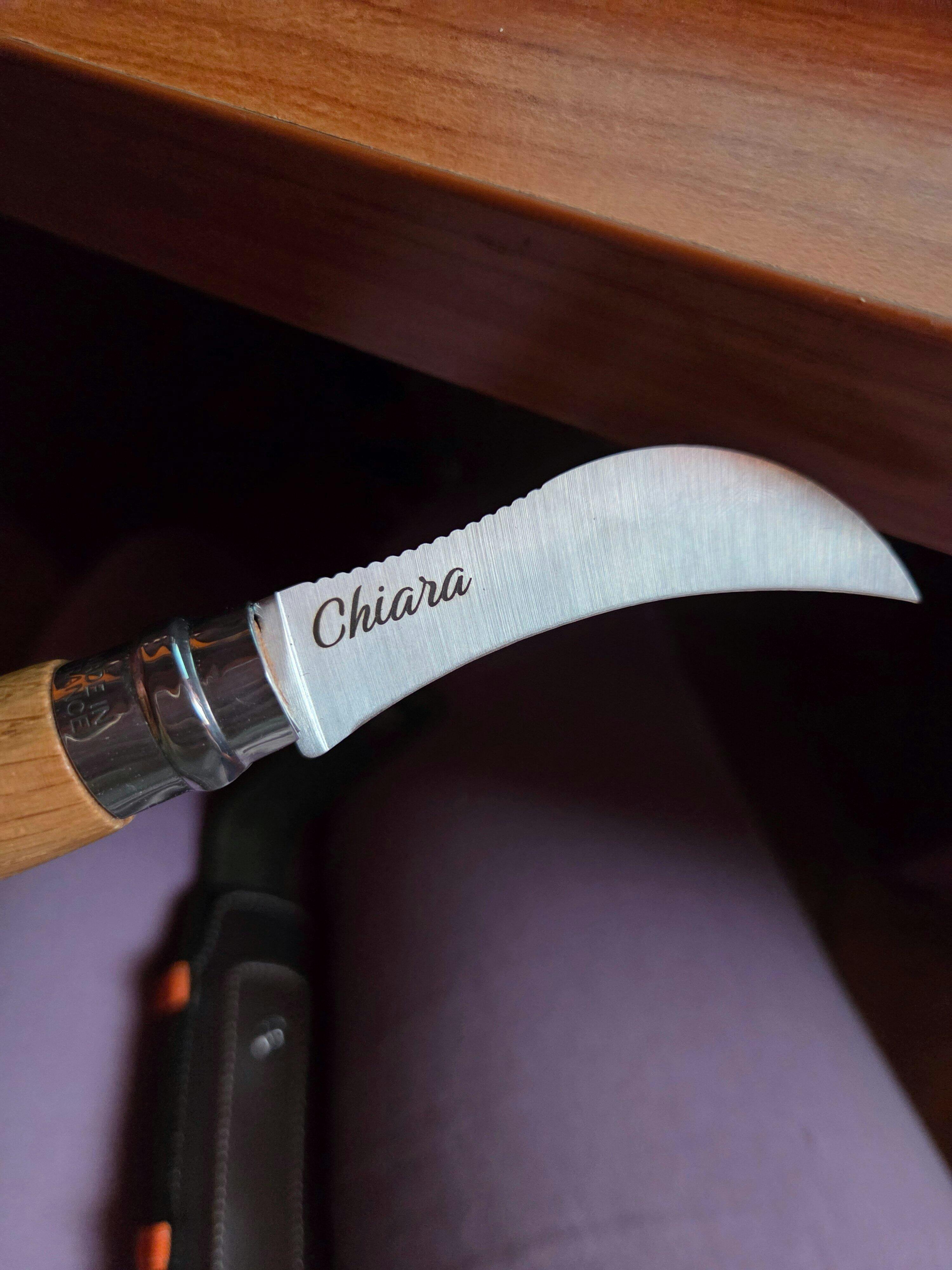 Puoi richiedere senza costi aggiuntivi l'incisione a laser nella lama di tutto quello che desideri ✍️